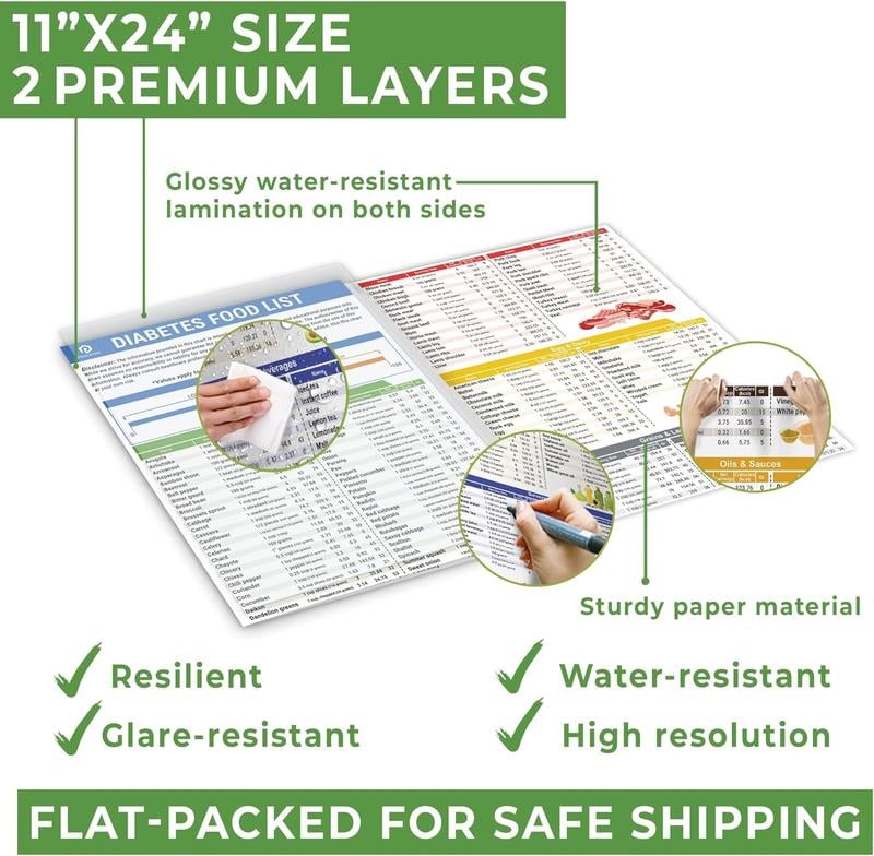 •DURABLE AND EASY-TO-USE DESIGN: Printed on high-quality material for durability, these charts are perfect for everyday use in kitchens, schools, and clinics, with a user-friendly layout that makes finding information quick and easy. Includes diabetic food journal and printable diabetic meal plan to facilitate daily diabetic management.